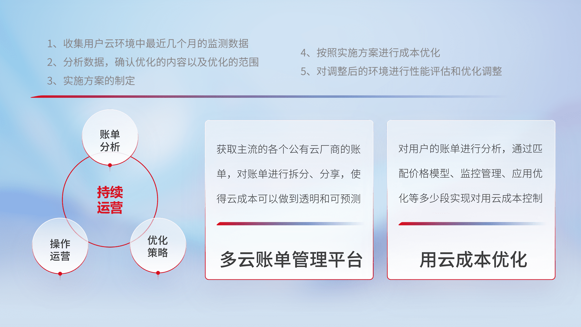 监控业务系统资源开销,,对资源的消耗精确计量,,实现费用的透明化管理,,不断提升资源使用率,,调整资源购买方式,,,,降低资源费用成本,,,,用云成本可预测、、用云费用可优化,,,云资源配额有据可依。。